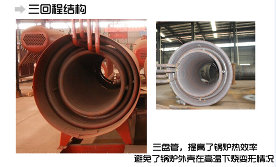 7、*佳流程設計:煙氣三回程,介質流經內外盤管,流速均勻,運行安全、穩定。